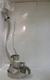 drawing installation, aluminum house flashing, tree branch, stool, wax thread, pigment
