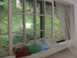 drawing installation, 4 ziploc bags, natural pigments, water, cheese cloth, vine, wire, plastic tarp